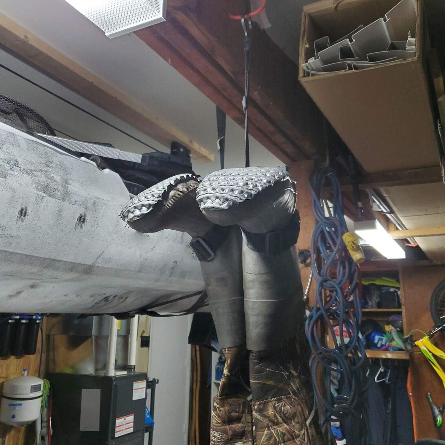 Keep your waders and boots organized and easily accessible with this adjustable strap hanger. The sturdy construction ensures durability, while the adjustable design allows you to customize the fit to suit your storage needs.